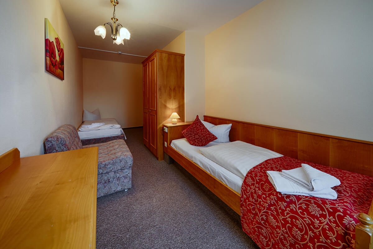 Optimal für das gemeinsame Reisen bietet unser Zweibettzimmer eine Alternative für jeden, der Wert auf getrennte Schlafmöglichkeiten legt, ohne auf Komfort zu verzichten. Außerdem bietet das Badezimmer mit der großen Badewanne eine wunderbare Entspannungsmöglichkeit.